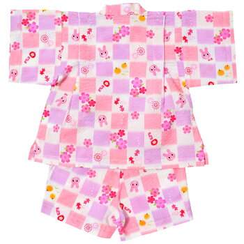 【30日限定☆ポイント5倍】ミキハウス ホットビスケッツ mikihouse キャビットちゃん♪さくら&市松柄甚平スーツ(80cm・90cm) ベビー服 キッズ 子供服 赤ちゃん こども 子供 女の子 甚平 浴衣