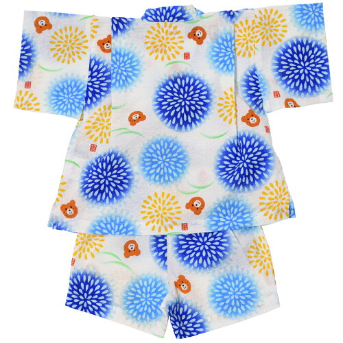 【30日限定☆ポイント5倍】ミキハウス ホットビスケッツ mikihouse ビーンズくん☆花火柄甚平スーツ(80cm・90cm) ベビー服 キッズ 子供服 赤ちゃん こども 子供 男の子 女の子 甚平 浴衣